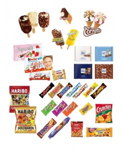 Magnum, Cornetto, Nogger, Haribo, Ritter Sport, Yogurette, Mars, Snickers, Twix u.v.m.